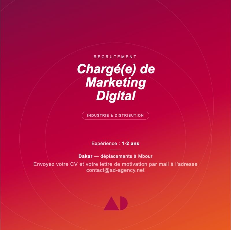Chargé(e) de Marketing Digital — Dakar, Sénégal avec des déplacements ponctuels à Mbour